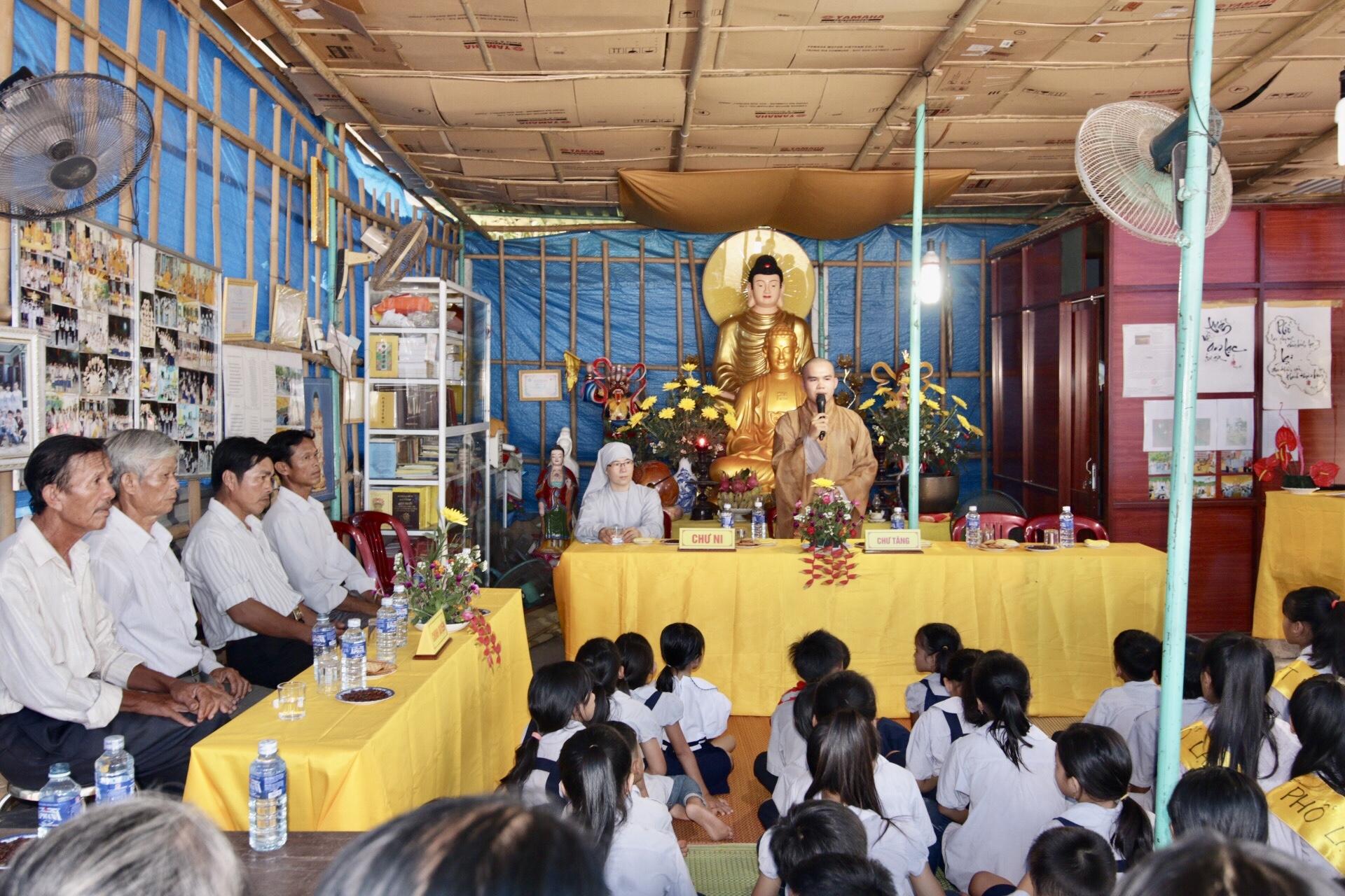 Năm 2016, trên thửa đất còn hoang sơ, vị sư trẻ (sinh năm 1996) ở trong một túp lều tre làm chánh điện tạm. Từ không gian khiêm nhường ấy, ngọn đèn tâm linh được thắp lên: bữa cơm chay thanh đạm, thời kinh an lạc, bước chân người già trẻ nhỏ về lễ bái. Câu chuyện dựng chùa dần trở thành câu chuyện gắn kết cộng đồng – chậm rãi mà lay động.