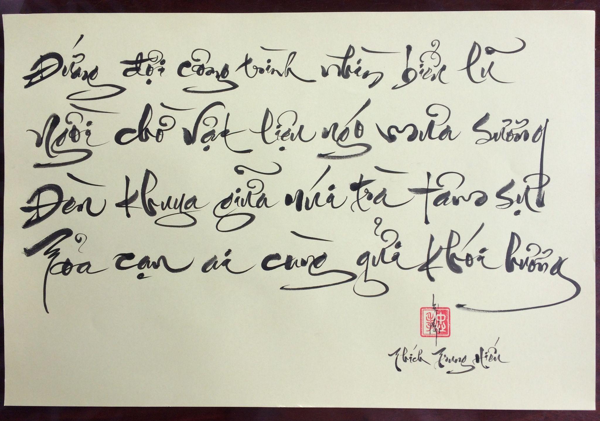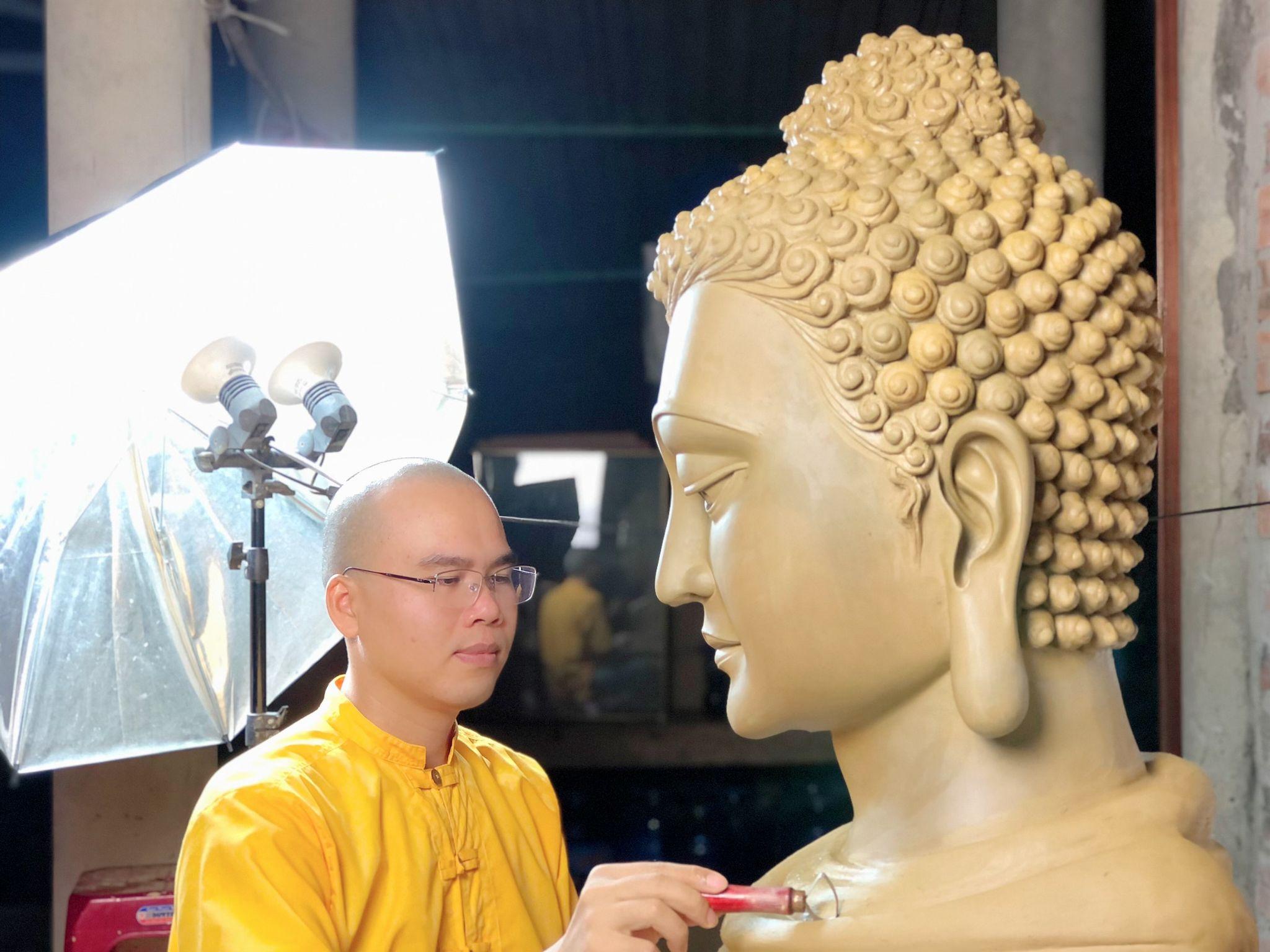 Trong khuôn viên, các tác phẩm thư pháp và điêu khắc tượng Phật do trụ trì thực hiện cũng được trưng bày – những mạch nghệ thuật song hành cùng đời sống tu tập, góp phần định hình bản sắc thẩm mỹ của một ngôi chùa vùng đồi.