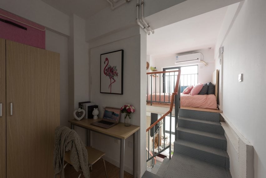 Trong khi hầu hết nhà ở xã hội hiện đại ở Trung Quốc sử dụng kết cấu tường thẳng đứng với chiều cao sàn từ 2,7 đến 2,9m, thì ở tòa nhà thứ năm, Atelier GOM đã tạo ra một khung bê tông cao 7,6m hoặc bộ khung, và chèn hai đơn vị gác xép nhỏ vào đó bằng kết cấu thép.