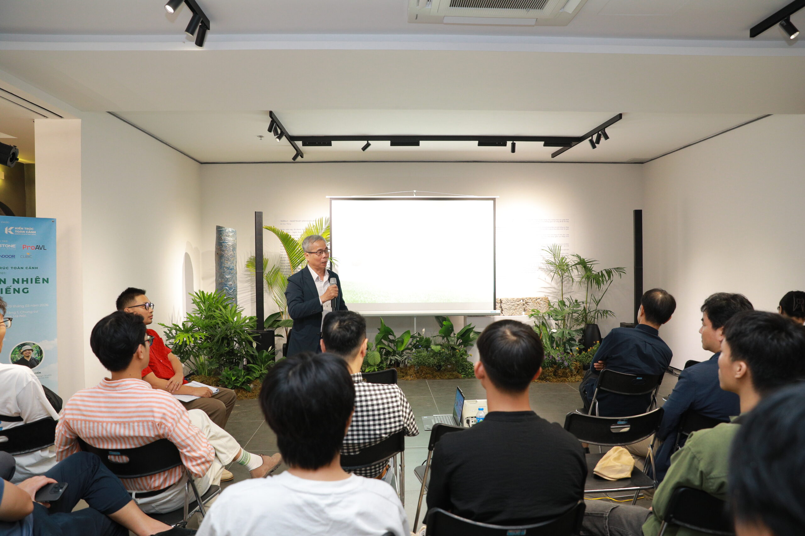 ThS.KTS Thái Lan Anh đã chia sẻ các giải pháp thiết kế cảnh quan phù hợp với điều kiện khí hậu nhiệt đới gió mùa, đồng thời nhấn mạnh việc tích hợp thiên nhiên như một phần cấu thành của không gian sống.