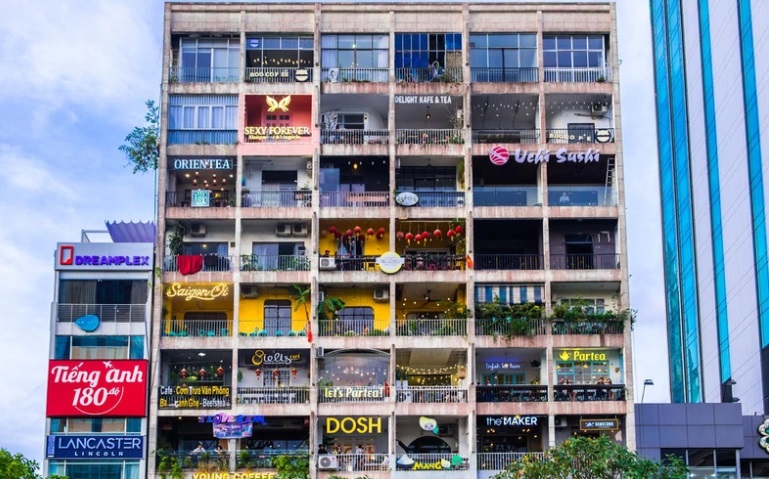 Các tập thể cũ tại TPHCM được biến thành những ô cửa hàng lung linh vào ban đêm. Ảnh: TL