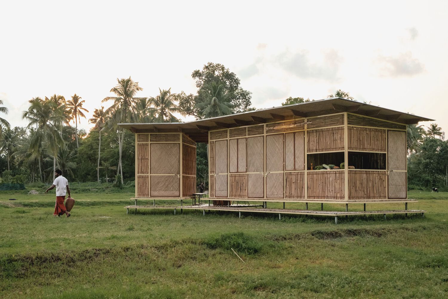 Tại Kollam, Ấn Độ, công ty NO Architects Designers and Social Artists đang tìm kiếm giải pháp nhà ở cho những khu vực có vấn đề về khả năng tiếp cận. Họ đã sáng tạo ra một Nhà công nhân (Workers Pavilion) tận dụng vật liệu sẵn có tại địa phương, có thể vận chuyển bằng xe tải hoặc thuyền trong trường hợp khẩn cấp. Trọng tâm của họ là sử dụng các vật liệu địa phương như tre, gỗ, cỏ và bùn với hệ thống kết cấu module và các liên kết bu lông. Cấu trúc thí điểm này rất độc đáo; nó sử dụng cọc ma sát, loại bỏ nhu cầu sử dụng bê tông, đồng thời giảm thời gian, chi phí và lượng khí thải carbon.