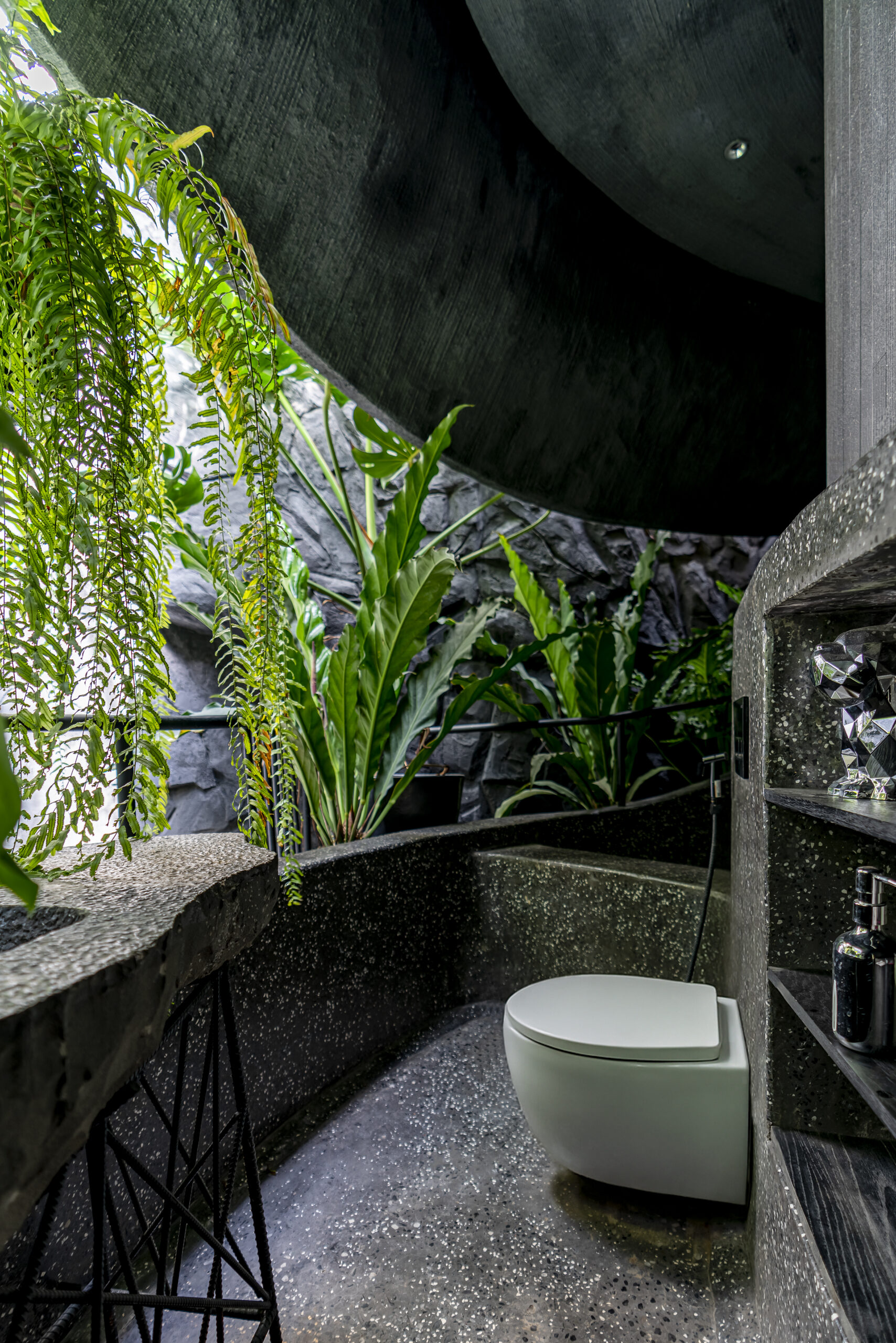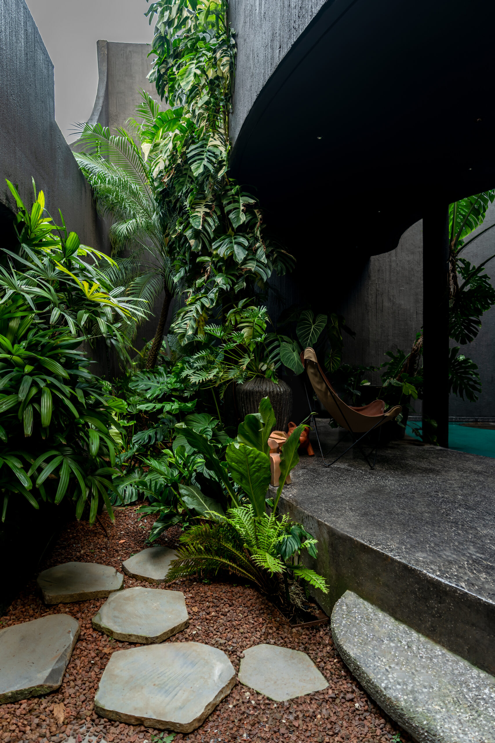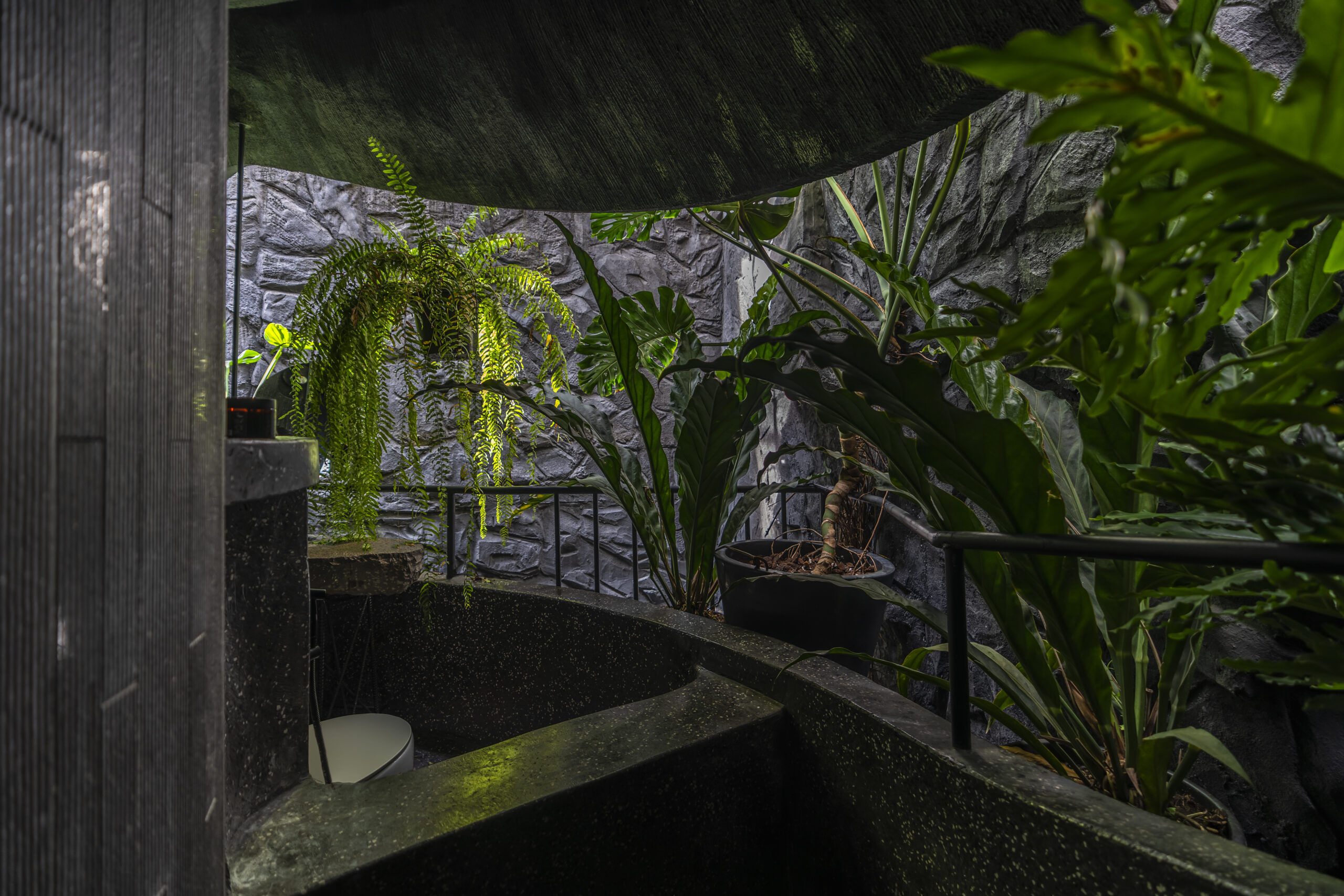 Giá trị thẩm mỹ & tinh thần thiết kế – Tinh thần chủ đạo của công trình nằm ở sự tương phản: giữa thô ráp và tinh tế, giữa khép kín và mở thoáng, giữa cũ và mới. Những đối lập này không chỉ mang giá trị thẩm mỹ mà còn phản ánh lối sống đương đại, nơi ranh giới giữa con người và thiên nhiên dần được xóa nhòa.