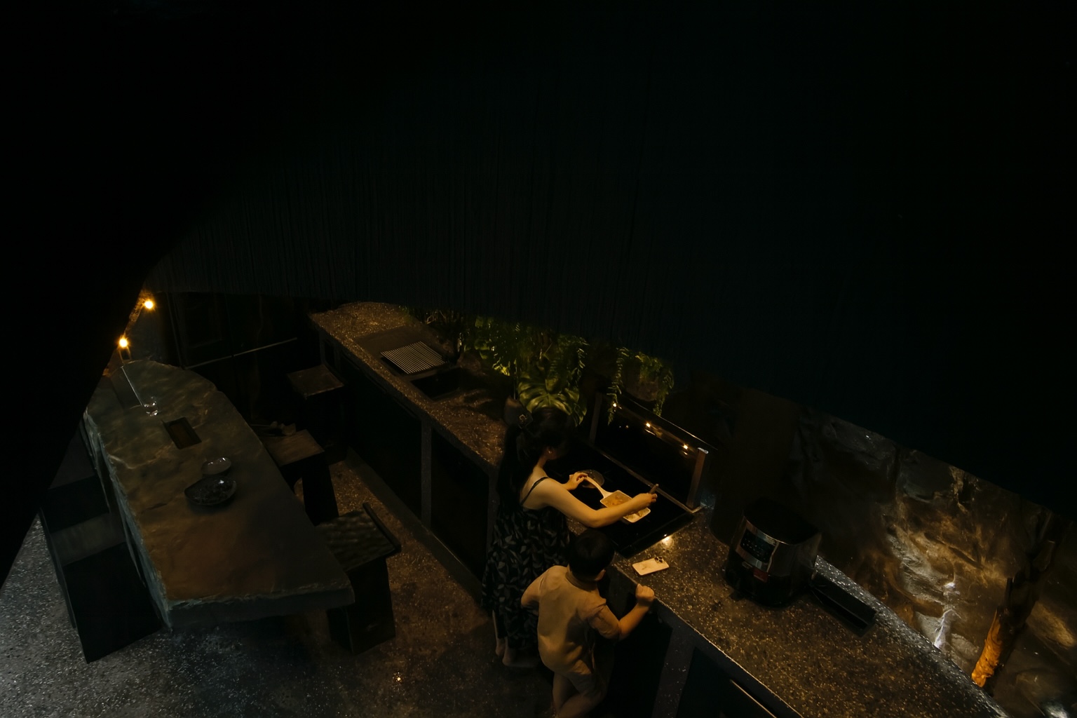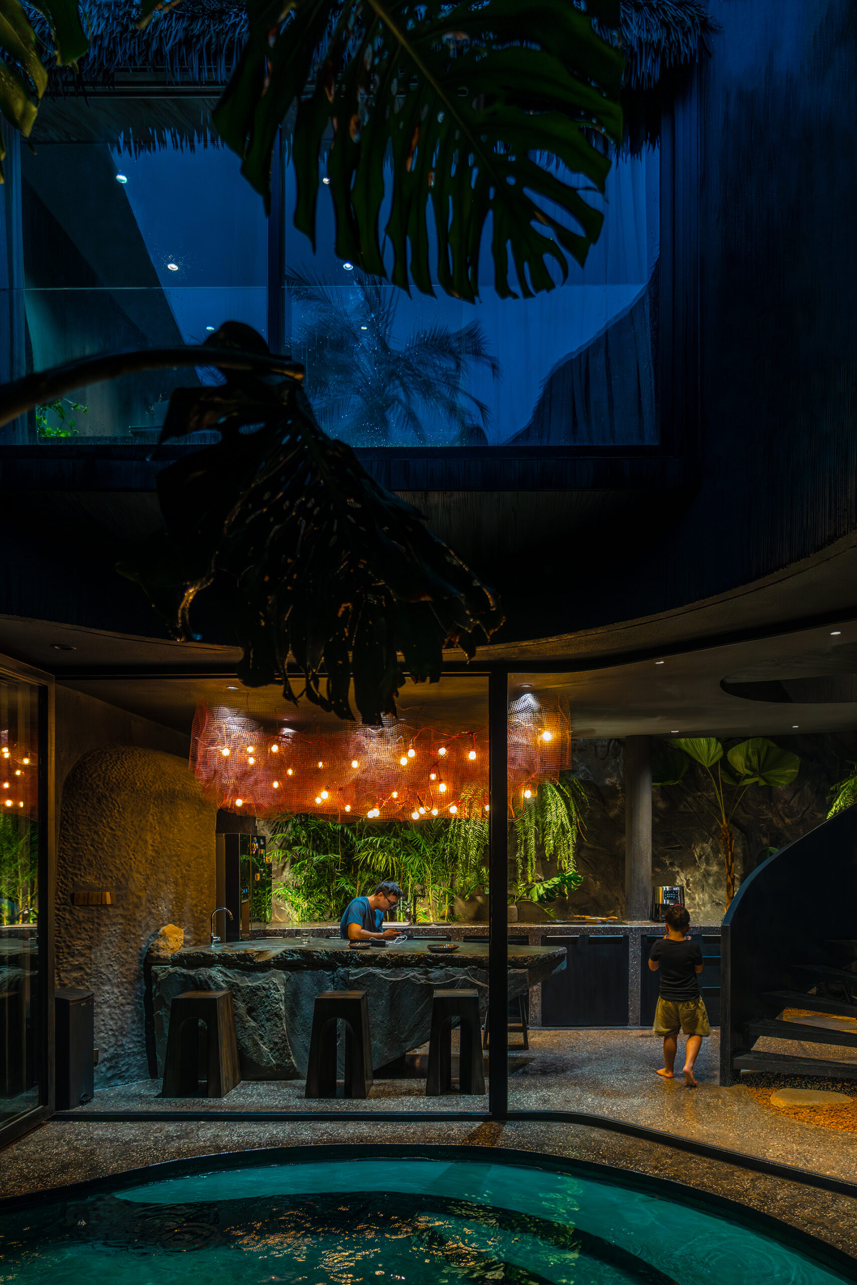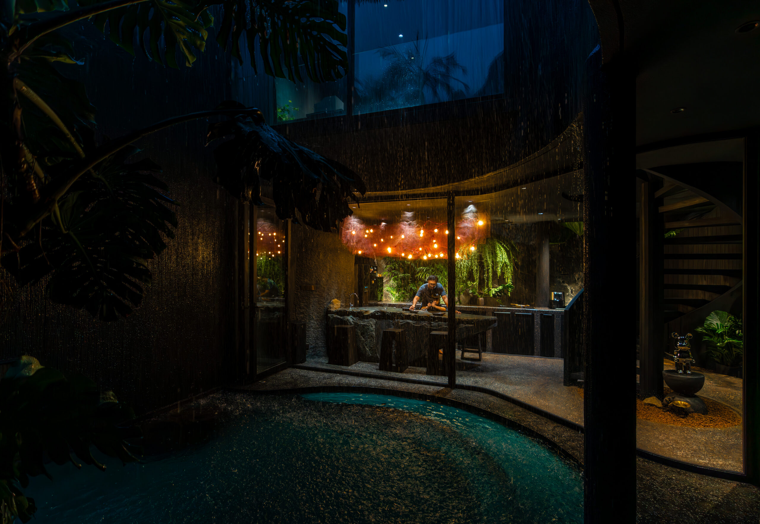Giá trị thẩm mỹ & tinh thần thiết kế – Tinh thần chủ đạo của công trình nằm ở sự tương phản: giữa thô ráp và tinh tế, giữa khép kín và mở thoáng, giữa cũ và mới. Những đối lập này không chỉ mang giá trị thẩm mỹ mà còn phản ánh lối sống đương đại, nơi ranh giới giữa con người và thiên nhiên dần được xóa nhòa.