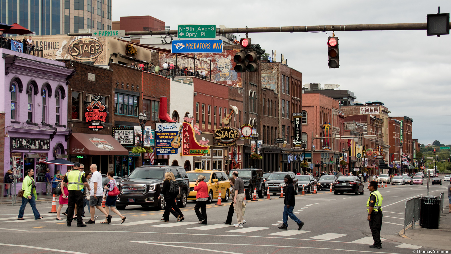 Việc lựa chọn màu sắc trở nên phức tạp hơn trong thành phố, nơi nhiều danh mục hình ảnh của các tòa nhà khác nhau, nơi đặt biển hiệu và quảng cáo, tất cả đều cạnh tranh nhau về mặt nhận thức. Ví dụ, Quảng trường Thời đại là một khu vực đô thị được định hình bởi nhiều lớp tương phản màu sắc trong thiết kế đồ họa môi trường. Việc lựa chọn biển hiệu mới trong khu vực phụ thuộc vào nhận thức thị giác của các tòa nhà liền kề, mã màu của đồ họa mà chúng thể hiện, và cách màu sắc mới nổi bật trong bảng màu hiện có.