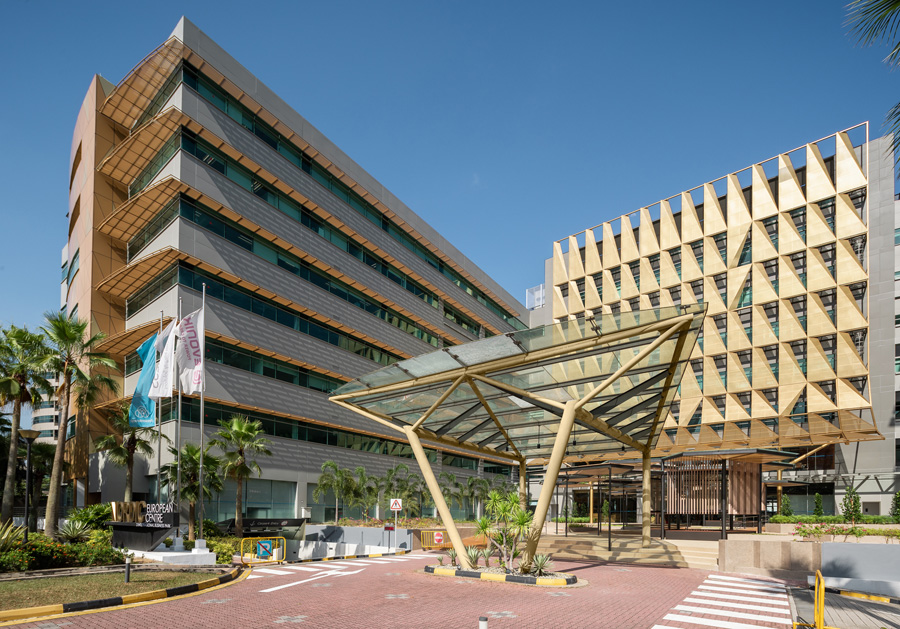 Ánh sáng ban ngày và kết nối thị giác được tăng cường thông qua các không gian chung được cấu hình lại, cải thiện cả hiệu quả năng lượng và trải nghiệm của người dùng. Nội thất được hoàn thiện bằng vật liệu bền vững, được chứng nhận sinh thái, đảm bảo độ bền và giảm tác động đến môi trường. Mặt tiền được nâng cấp để cải thiện hiệu suất đồng thời làm mới bản sắc thị giác của tòa nhà, mang lại cho tòa nhà sự hiện diện đương đại trong Khu công nghiệp quốc tế.