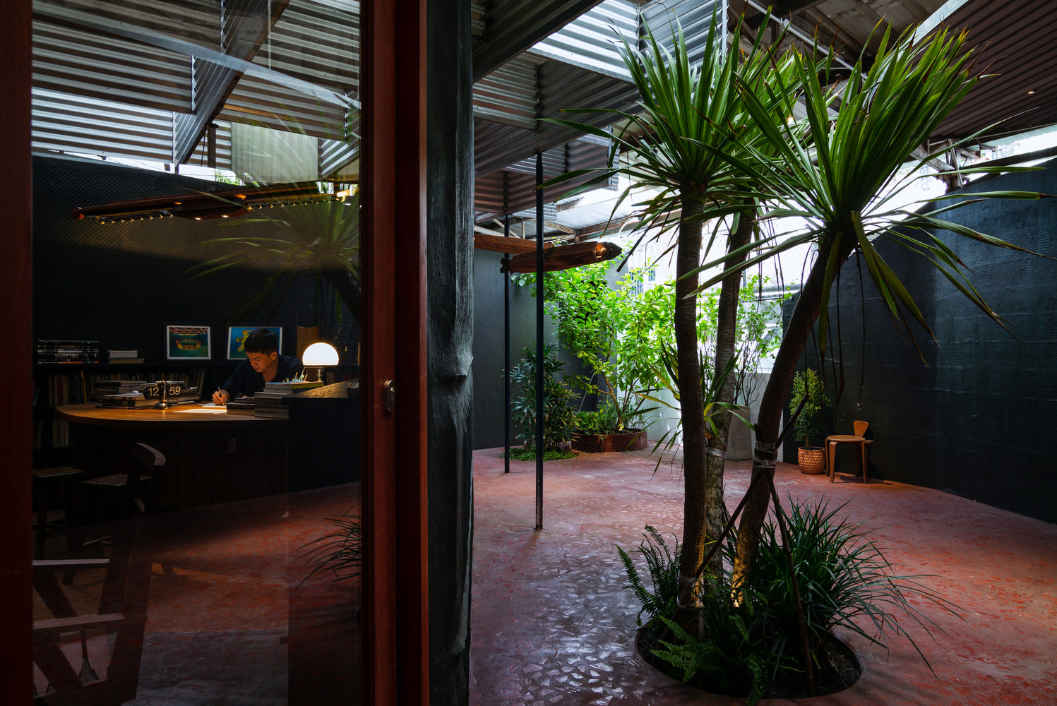 (Văn bản mô tả do KTS cung cấp) Văn phòng của tho.A Atelier là dự án cải tạo một cơ sở nuôi tôm cũ được xây dựng vào năm 2015. Sau khi khảo sát tình trạng hiện tại, nhóm thiết kế nhận thấy rằng nền móng và mái tôn khung thép vẫn còn chắc chắn về mặt kết cấu và không cần phải phá dỡ. Phương pháp được chọn là giữ lại kết cấu cũ trong khi “ghép” một kết cấu mới vào bên trong, cho phép tạo ra không gian làm việc đa chức năng.