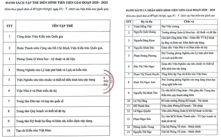 Danh sách khen thưởng tập thể, cá nhân điển hình tiên tiến giai đoạn 2020-2025